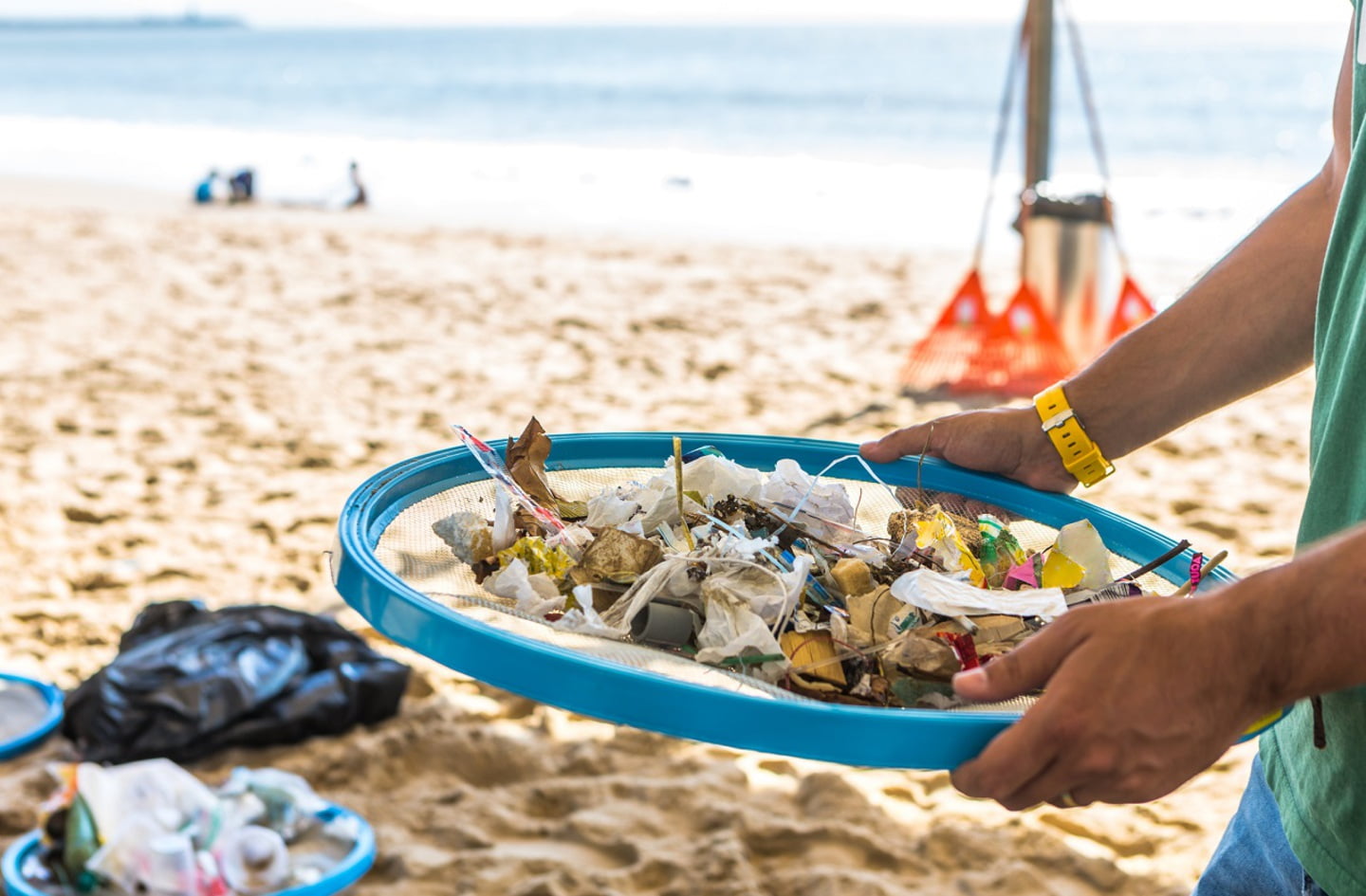 1. Sieve: removes organic waste (e.g. maggots etc.) and small pieces like broken fragments of glass. Caps won’t be separated.